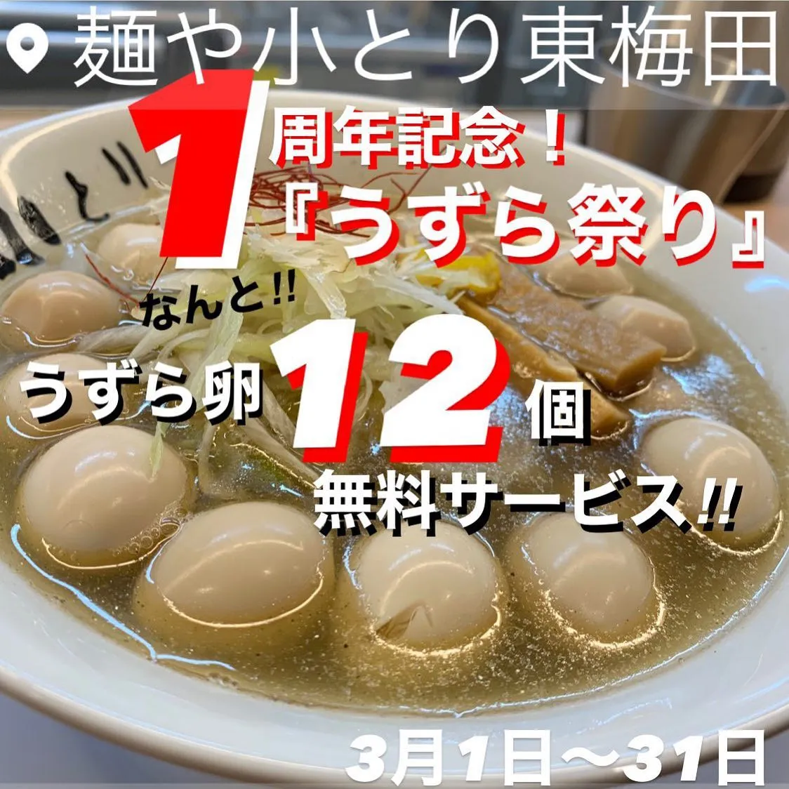 来たる3月1日‼️おかげさまで #麺や小とり東梅田 は1周年を迎えることになりました🍜🍜🍜