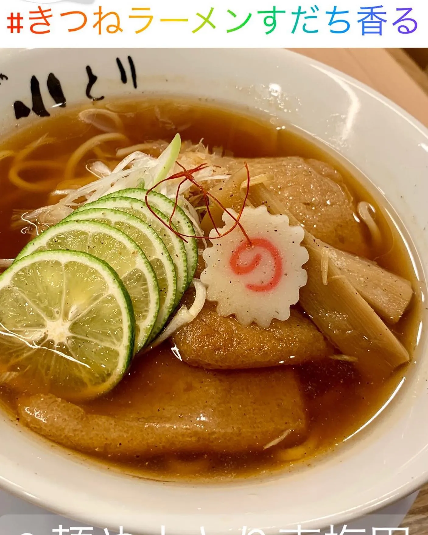 新メニュー✨#きつねラーメンすだち香るはじめました❣️ありそうでない#きつねラーメン!きつねうどんには極力寄せずに、あくまでラーメンにこだわりました🍜✨▶️厚めの甘〜いお揚げさんが2枚🦊🦊▶️醤油ベースで…