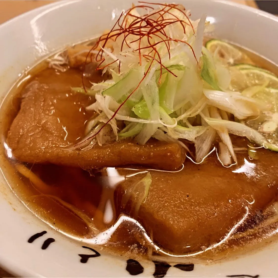 旗揚げしました🦊#きつねラーメンすだち香るありそうでない#きつねラーメン!はじめましたきつねうどんには極力寄せずに、あくまでラーメンにこだわりました🍜✨▶️厚めの甘〜いお揚げさんが2枚🦊🦊▶️醤油ベース…