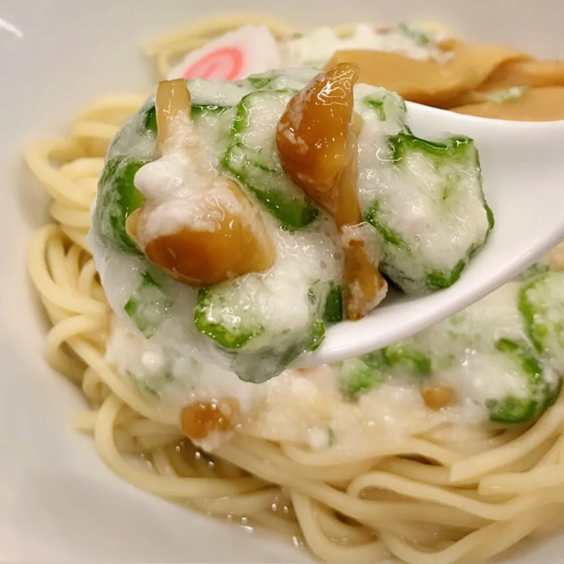 夏季限定 夏季限定#山つけ玉そば900円はじめました#ねばねば好きな人と繋がりたい▶️とろろ、オクラ、なめこのねばねばトリオに絡まる、とろんとろん昆布水の冷たいラーメンを、溶き卵にとろ〜りとつけてお召し上が…