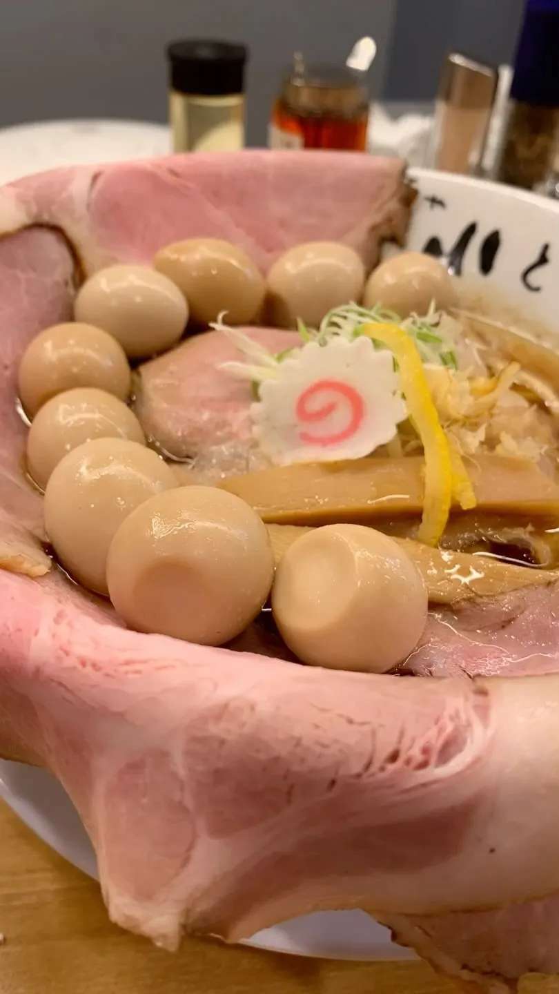 小とりそば+肉増し4枚+うずら9個!!!圧倒的ヴィジュアル笑🤣❗️トッピングもいろいろと楽しめますよ🥩🐣✨#小とり#ラーメン#大阪ラーメン#ラーメン好きな人と繋がりたい#ラーメン女子#関西グルメ#関西ラ…
