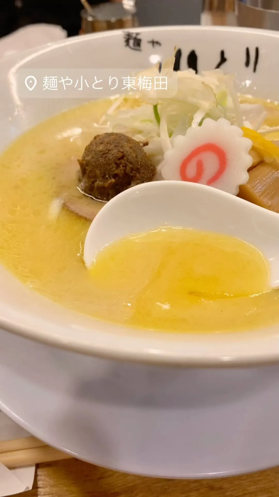 新発売!『鶏白湯そば』復活しました🐔🍜✨みるみる間に看板商品に❗️鶏白湯スープにマー油風味の鶏肉団子を少しずつ崩し溶かして味変してくださいね🐔🐣🐓🙏「麺や小とり東梅田」へぜひご賞味ご来店くださいませ…