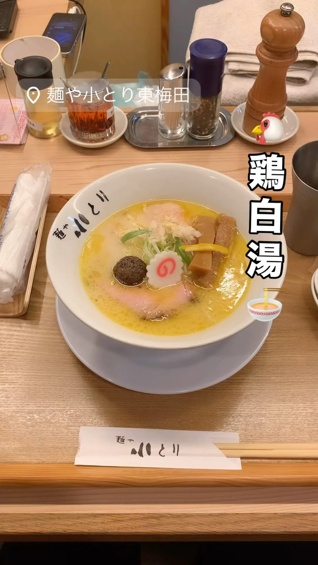 新発売!『鶏白湯そば』はじめました🐔🍜✨みるみる間に看板商品に❗️鶏白湯スープにマー油風味の鶏肉団子を少しずつ崩し溶かして味変してくださいね🐔🐣🐓🙏「麺や小とり東梅田」へぜひご賞味ご来店くださいませ…