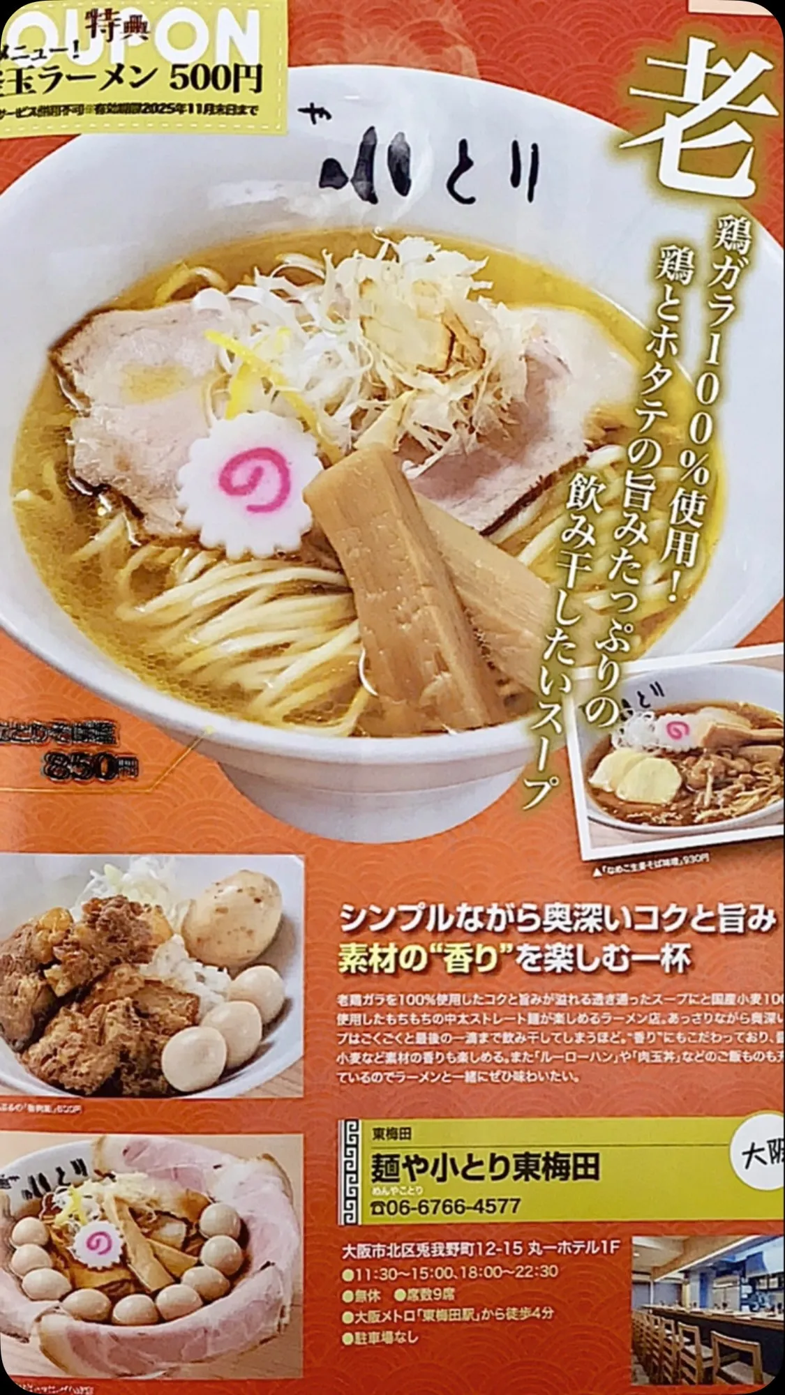 Osaka Metroのe METROアプリにて、オオサカト... OsakaMetroのeMETROアプリにて、オオサカトクトクパスに弊店「麺や小とり東梅田」も紹介されていますお得なサービスもございますので、ぜひご参照くださいませ#麺や小とり東梅田#鶏ガラスープ#小とり#ラ…
