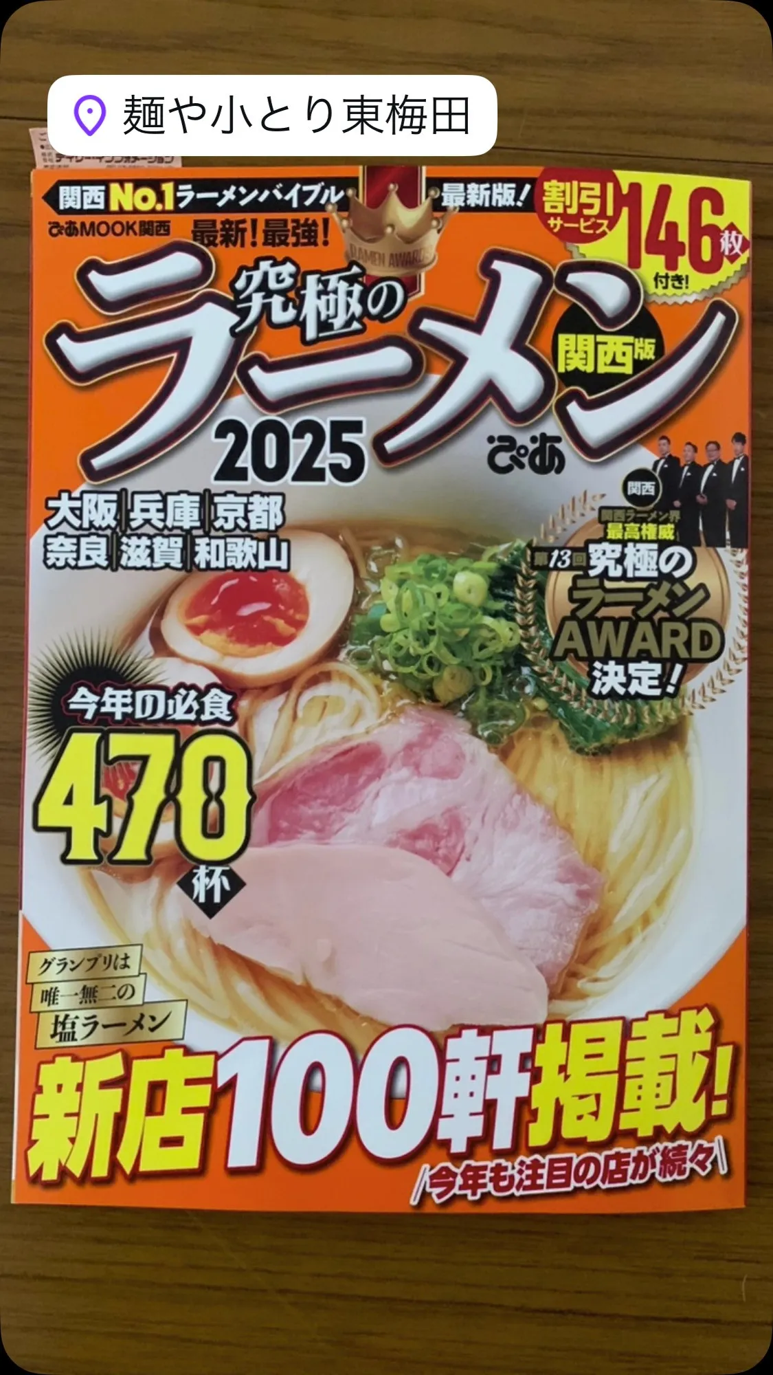 「ぴあ究極のラーメン2025」に弊店「麺や小とり東梅田」が掲... 「ぴあ究極のラーメン2025」に弊店「麺や小とり東梅田」が掲載されました🍜😆🙏🫧▶︎クーポン提示で、「裏メニュー釜玉ラーメン500円」のサービス提供がございますので本誌ご購入後ご利用くださいませ🎅🎄☃️✨(※…