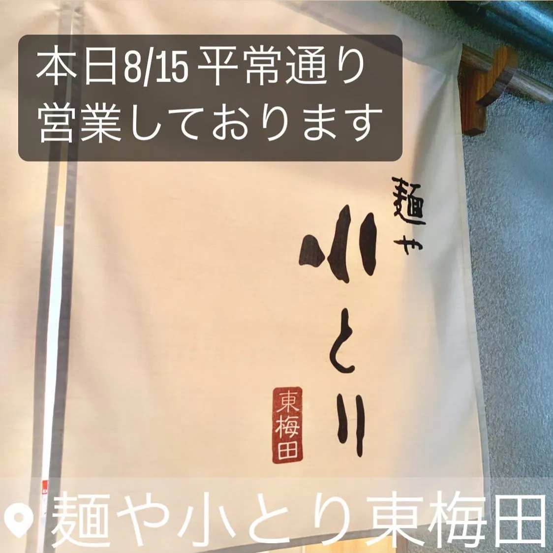 本日8/15 本日8/15平常通り営業しております!!!#麺や小とり東梅田#無化調#小とり#ラーメン小とり#ラーメン好きな人と繋がりたい#関西グルメ#関西ラーメン#大阪ラーメン#大阪グルメ#梅田ラーメン#梅田グル…